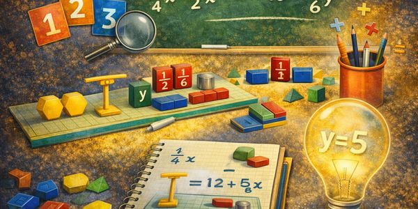 Instead of “just divide both sides by ½,” students physically exchange pieces to maintain balance and see why the math works.